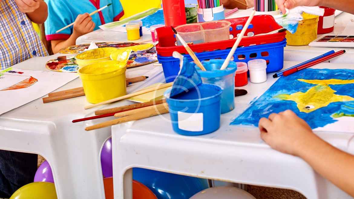 We teach your children to work with watercolor paint, develop artistic skills and engage them in the team-working process of creating collages and mosaics.